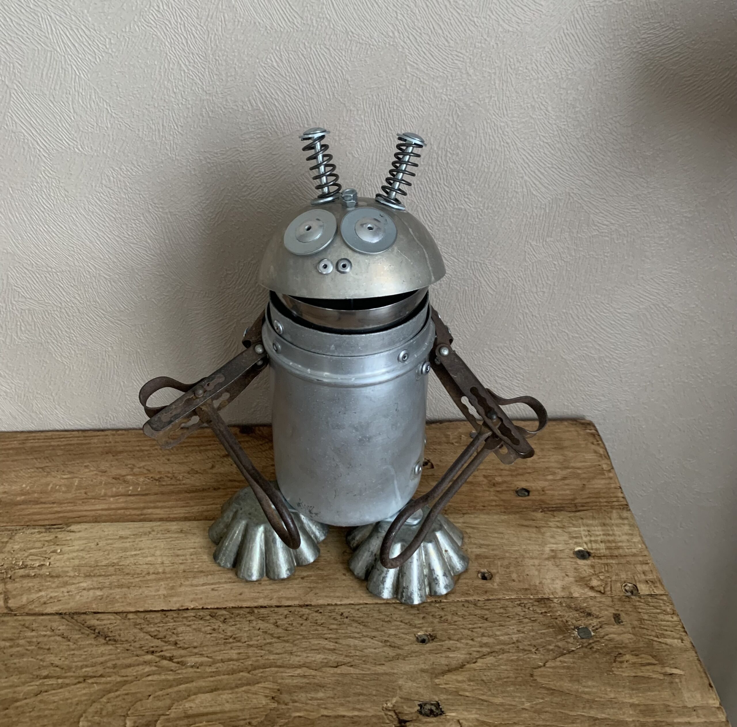 Réalisé avec des matériaux de récupération, chinés en brocante ou sur internet hauteur env. 25 cm