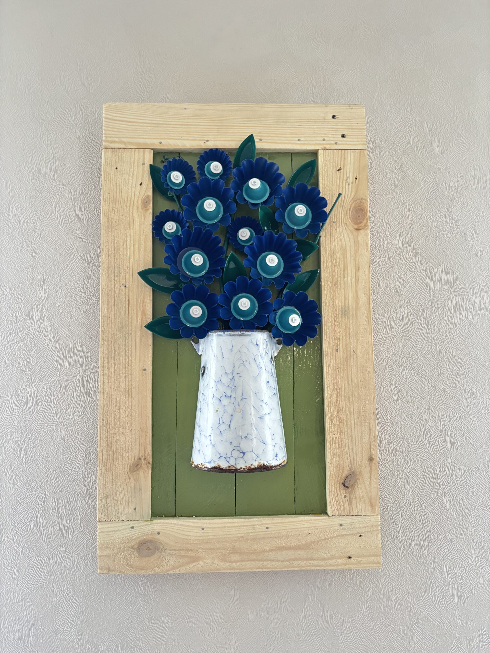 Réalisé avec des matériaux de récupération, chinés en brocante ou sur internet hauteur env.64 cm de haut et 37 cm de long