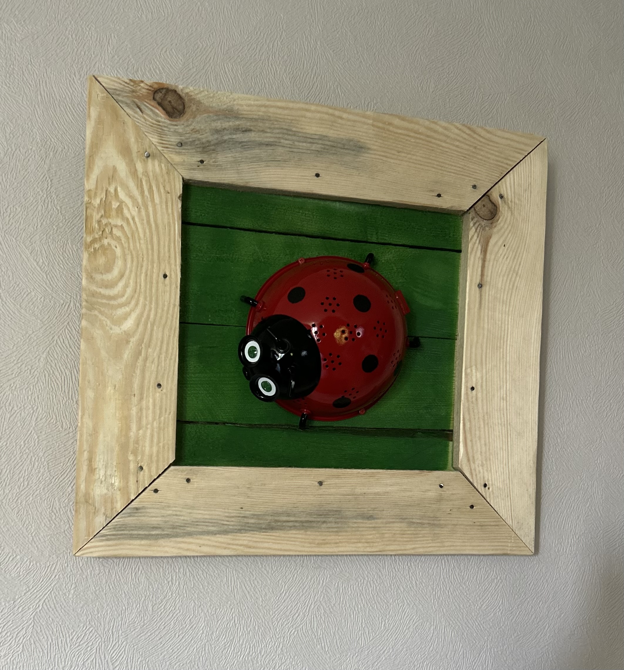 Réalisé avec des matériaux de récupération, chinés en brocante ou sur internet hauteur env. 35 x 38 cm