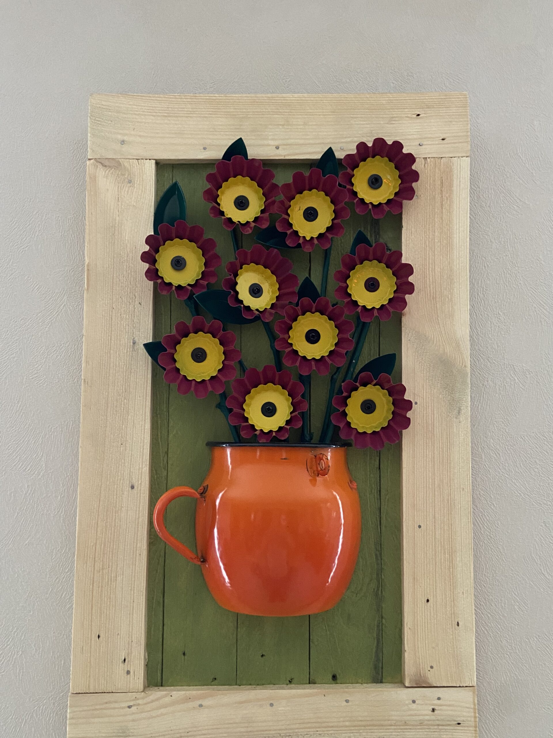 Réalisé avec des matériaux de récupération, chinés en brocante ou sur internet hauteur env.67 cm de haut et 40 cm de long